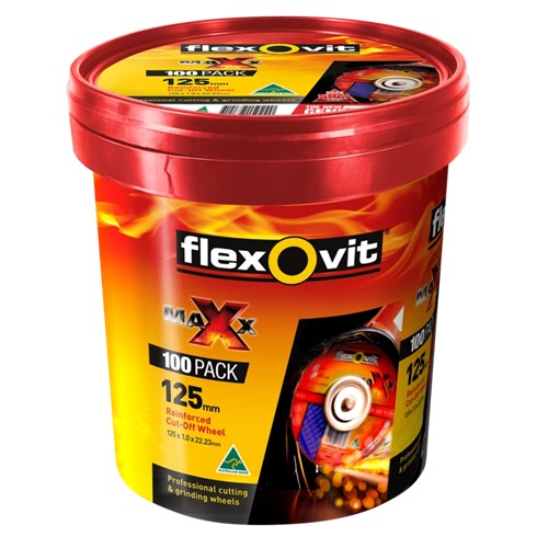 FLEXOVIT 125 X 1.0MM STEEL & STAINLESS CUT OFF DISC – MEGA INOX – 100 PIECE TUB