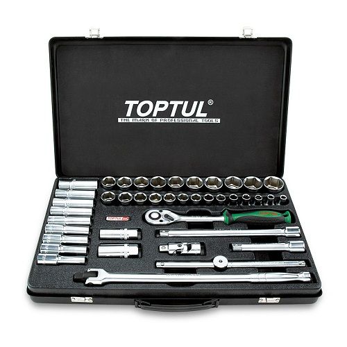 TOPTUL SOCKET SET 1/2"DR STD & DEEP METRIC 41PC 8-32MM